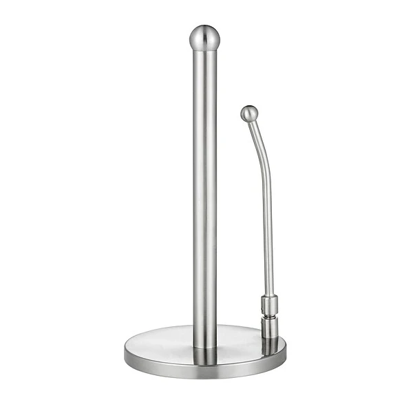 The Alpine Stainless Steel Paper Towel Holder with its sleek design and clever spring-loaded retaining arm is a welcome addition to any kitchen, bathroom, restaurant tabletop or other area where paper towels are nearby for quick cleanup. As you pull off one or more sheets the retaining arm remains in contact with the roll, easing the tear-off process while keeping the rest of the towels neatly contained. The freestanding paper towel holder accommodates any size or brand of paper towels.