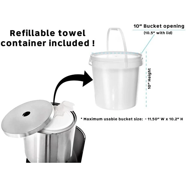 - REDUCES CLEAN UP- We like to keep things simple but efficient. This commercial size trash can with a height of 36 inches and a width of 13 inches is big enough to hold large quantities and has an easy access door to change out trash bags. The added sanitary wipes dispenser with a bonus wipe holding bucket is an added convenience to keep large areas clean and germ free. You can empty out the trash and with quick wipe clean up as well.