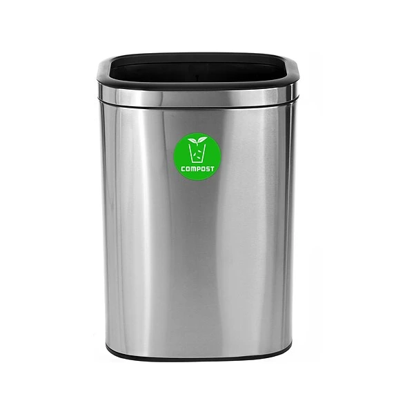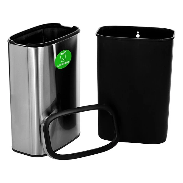 - Includes a 10.5 gal. stainless-steel trash can and a green Compost sticker