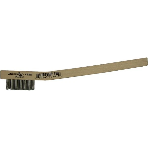 Anchor Brand® Standard stapled fill utility brush features curved wooden handle and is perfect for metal finishing in narrow areas. Brush has brass bristles and features 3 x 7 bristle rows.