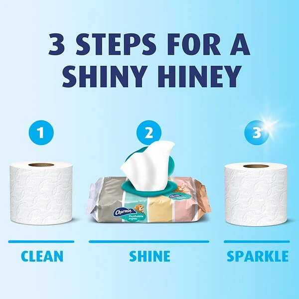 Try Charmin flushable wipes, now with a resealable flip top to keep your wipes moist and shiny. They’re flushable and safe for your sewer or septic system. That’s because this little soft pack is hugely portable, so you can take it with you to enjoy the go on the go!