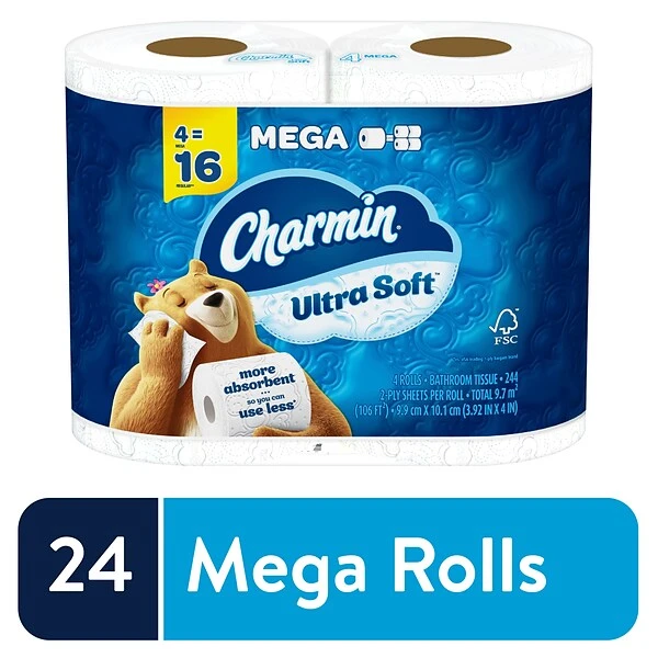 It is two times more absorbent. When you buy Charmin Ultra Soft mega roll of toilet paper you get a big, long-lasting roll because one of these mega rolls equals four regular rolls. Also, Charmin Ultra Soft toilet paper is 2-ply and septic-safe.