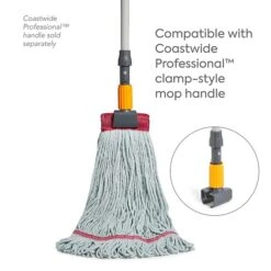 Coastwide Professionalâ„¢ Looped-End Wet Mop Head, Medium, Recycled PET, 5″ Headband, Blue (CW57752)