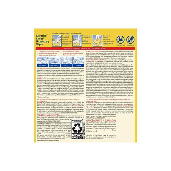 - GREAT FOR COMMERICAL USE: From CloroxProâ„¢, these disinfecting wipes are ideal for use on frequently touched surfaces in shared public spaces, offices, athletic facilities, schools, and more