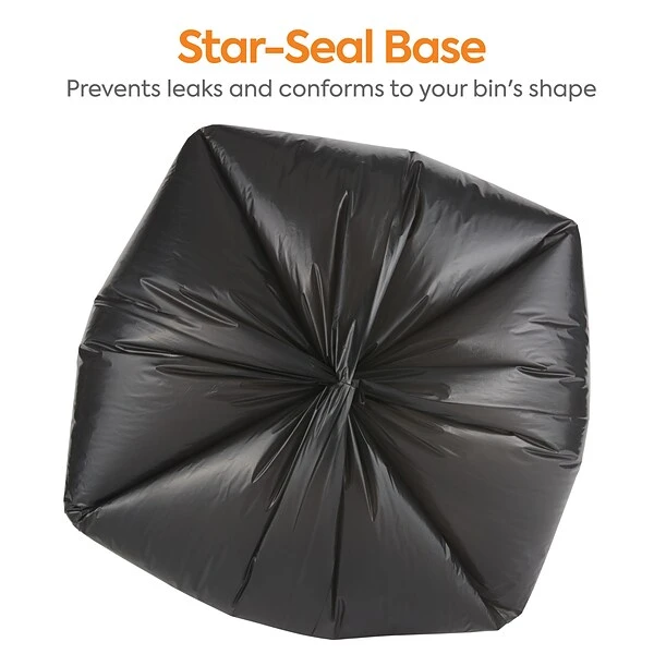 Keep workplaces free of office and food waste with these trash bags. The black coloring blocks refuse from sight, ideal for preserving privacy and disposing of sensitive materials. Low-density plastic resists stretching under the weight of heavy loads, and the tear-resistant design makes carrying sharp items easy. These Coastwide Professional™ black low-density trash bags fit in small garbage receptacles and hold up to 16 gallons of waste so you can go longer before emptying.