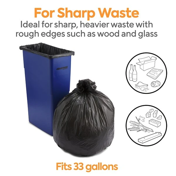 - These 30-33 gal. capacity medium strength bags ideal for all trash applications, including heavy industrial trash