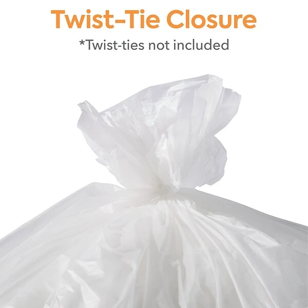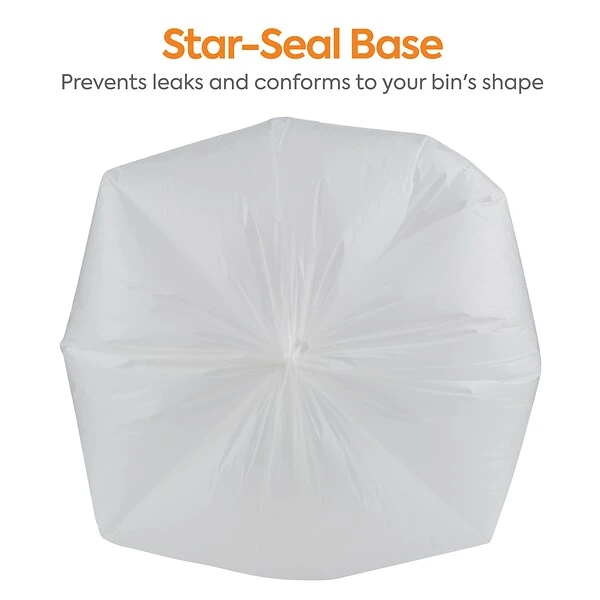 Keep high-traffic areas litter-free with these transparent trash bags. The 55 to 60-gallon capacity is ideal for use in commercial establishments and public places, while the 22 mic. thickness and high density offer industrial strength and stay intact when lifted. This carton of 150 Coastwide Professional™ natural high-density trash bags comes with 10 rolls for a lasting supply and easy dispensing.
