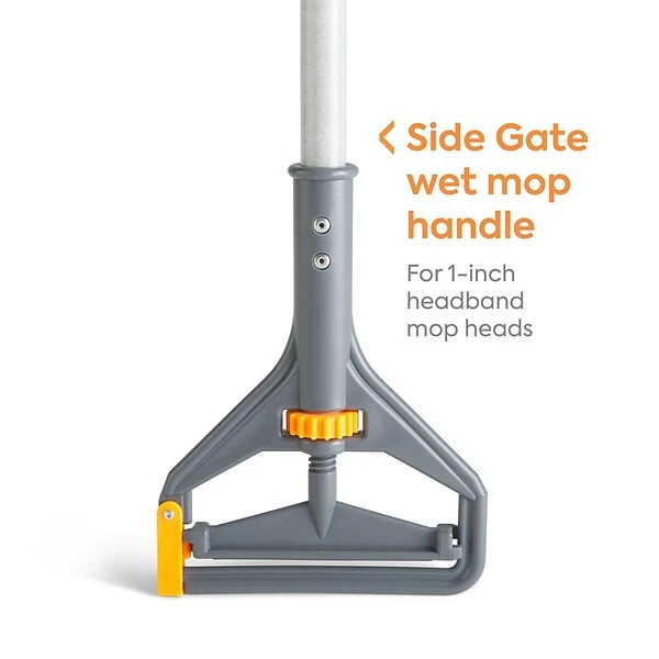 Get a convenient handle for 1-inch headband mop heads with this fiberglass side gate mop handle. The thumbwheel clamp keeps the mop securely in place, while the durable fiberglass handle offers durability, reliable performance and control. The 60-inch length lets you easily glide the mop across the floor. This Coastwide Professional fiberglass side gate mop handle has orange wayfinding guidance so you can easily switch out mop heads.