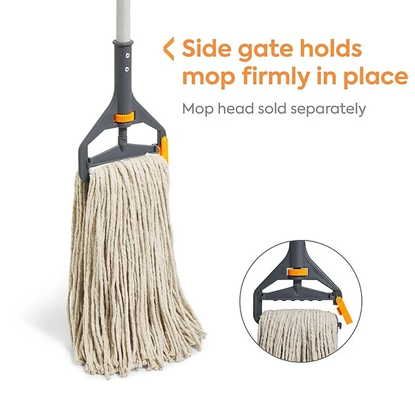 - Side gate handle holds 1″ headband mop heads firmly in place