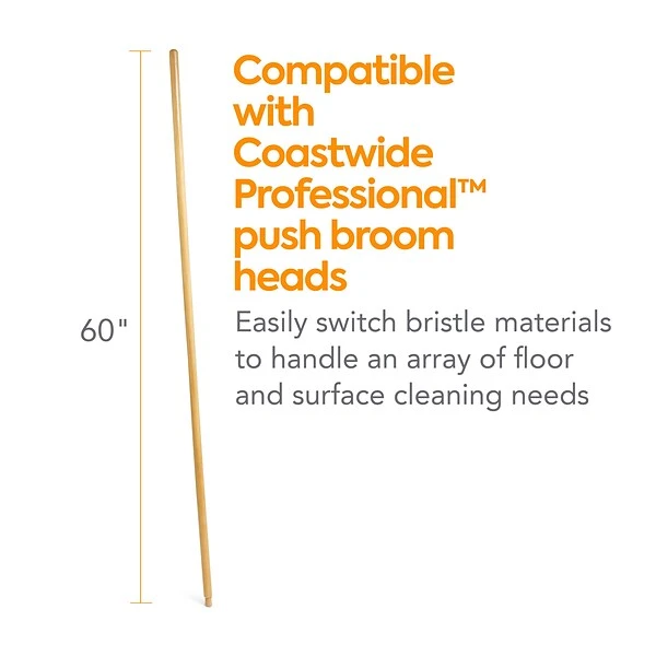 Set up your push broom heads for daily use with this push broom handle. The durable wood construction offers an economical cleaning solution and provides dependable performance, while the threaded wood tip makes setup simple. Compatible with standard broom heads, this Coastwide Professional wood-tip push broom handle lets you easily switch bristle materials to handle an array of floor cleaning needs.