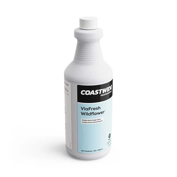 Coastwide Professional ViaFresh Wildflower is a highly effective and powerful odor-killing product. It contains a safe but powerful enzyme producing system designated to eliminate a wide range of malodors. Quickly kills unpleasant odors from vomit, urine, pets, spoiled meat, soured milk, cooking, tobacco smoke, mildew, drains, grease traps, garbage, compactors, portable toilets, spoiled food, and more.