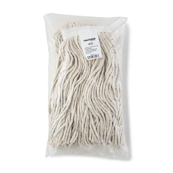 Keep your workplace spotless with this white wet mop head. The cut-end construction is cost-effective option for everyday light-duty cleaning, while the cotton material is highly absorbent to dry up wet floors fast. Featuring a 1-inch headband and the launderable design, this Coastwide Professional white cut-end wet mop head is perfect for use with side-gate mop handles.