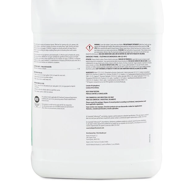 This Coastwide Professional Clean All general purpose carpet spotter and degreaser cleaner is perfect for use on floors, walls, fixtures and most other surfaces not harmed by water. Bulk packaging includes four 3.78-liter containers for cleaning soils, oils, grease, inks and other stubborn soils. Designed for use in a variety of applications including auto scrubbers and pressure washers. Besides, Coastwide Professional Clean All floor finish meets CARB and NSF Non-Food standards.
