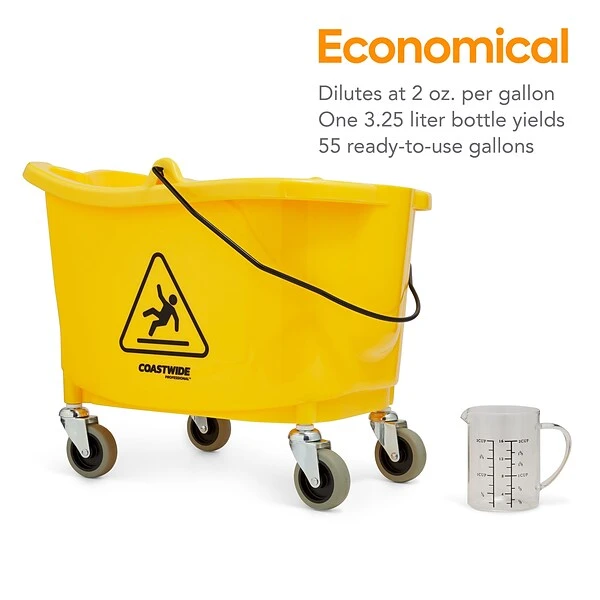 - Dilutes at 2 oz. per gallon. One 3.25 L bottle yields 55 ready to use gallons