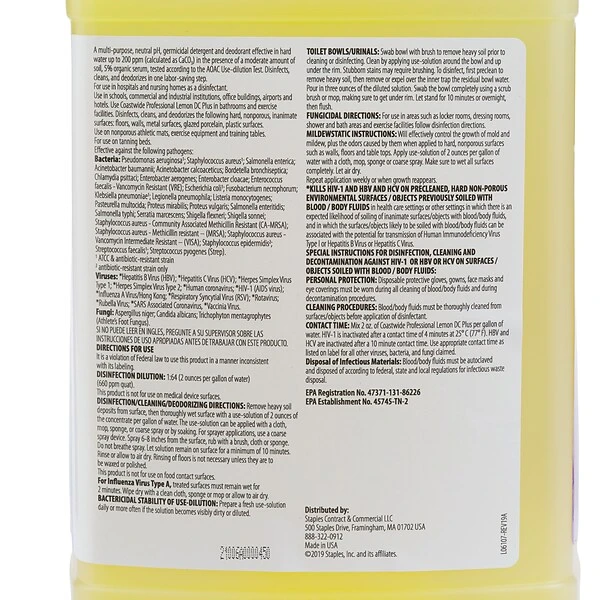 Help eliminate germs in your building’s dining areas, restrooms, and offices with this disinfectant. The quat formula is effective against MRSA, E. coli, SARS and other viruses. This Coastwide Professional™ Lemon DC Plus Disinfectant works with ExpressMix dispensers, providing easy access when your staff needs to fill spray bottles before cleaning.