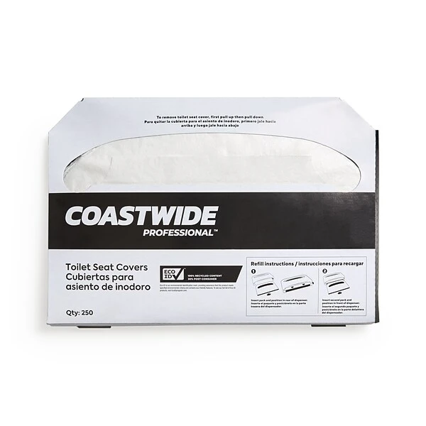 Promote proper hygiene in shared restrooms with these sustainable paper toilet seat covers. The half-fold design is easy to place, while the flushable construction doesn’t harm the septic system. Each pack contains 250 covers, reducing maintenance visits for refills. With 20 packs in the carton, these Coastwide Professional™ white paper toilet seat covers are a great option for larger offices or commercial spaces.