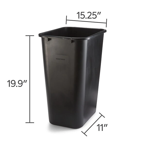 Coastwide Professional wastebaskets are perfect for any space. The sturdy design can stand up to heavy loads, and the soft molded plastic provides stability for occasional mishaps. Each wastebasket’s subtle appearance allows it to easily blend into many common business areas.
