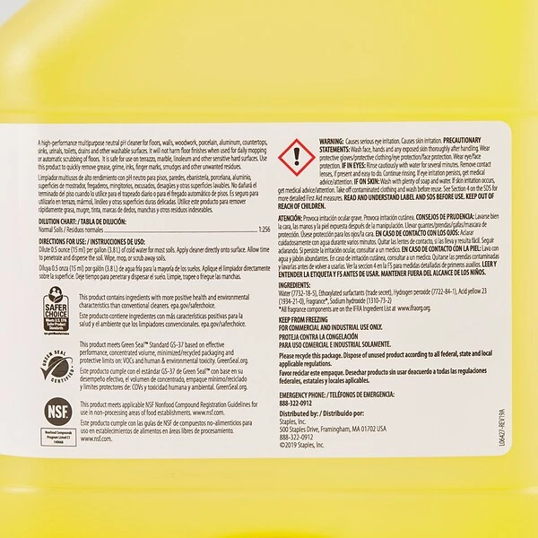 Remove grease and smudges with this multipurpose cleaner. Neutral pH properties allow for use on surfaces not hurt by water. The 3-liter bottle is compact for convenient storage and portability. This cleaner is available in a pre-tipped bottle to ensure you consistently get the right dilution ratio for the best results. This Coastwide Professionalâ„¢ 64 Multi-Purpose Neutral cleaner features an ergonomic handle for easy dispensing and less mess.