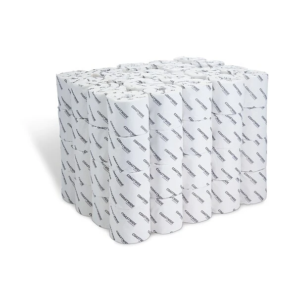 Maintain a steady supply of restroom essentials with this bulk pack of bath tissue rolls. The individually wrapped packaging promotes hygiene and helps to avoid cross-contamination. Two-ply construction provides enhanced strength and absorbency, along with a soft feel. Thoughtfully manufactured with no added dyes or fragrances and whitened without chemicals containing chlorine, these Coastwide Professional two-ply bath tissue rolls are an ideal choice for those with sensitive skin.