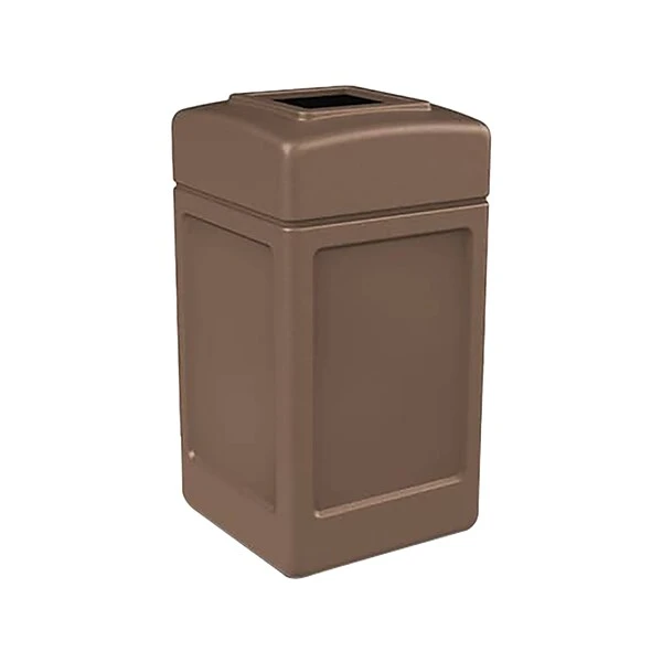 - Open-top square waste container with lid is great for indoor or outdoor use
