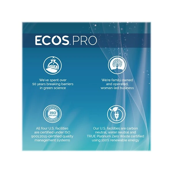 Crystal clear, plant-powered ECOS PRO Free & Clear liquid hand soap is formulated to lift dirt and grease, but gentle enough for even the most frequently washed hands. Infused with nourishing vitamin E and antioxidants, the hand soap moisturizes while protecting hands. A readily biodegradable, pH-balanced formula is made using sustainable, plant-powered ingredients. Made without dyes; gray water and septic safe. Recognized by US EPA’s Safer Choice (DfE) and USDA’s BioPreferred program.