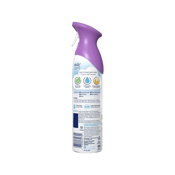 The Febreze Air handheld aerosol actually eliminates air odors and removes stink with a neat little molecule called cyclodextrin. It’s a handy air freshener that’s easy to use: simply spray in a sweeping motion and clean away those bad smells anywhere, including bathroom, kitchen, that cabin you rented for the weekend, shoe closet, and your kids’ room, anytime you want an instant burst of freshness. And because Febreze Air uses 100% natural propellants, you can confidently freshen your home every day.
