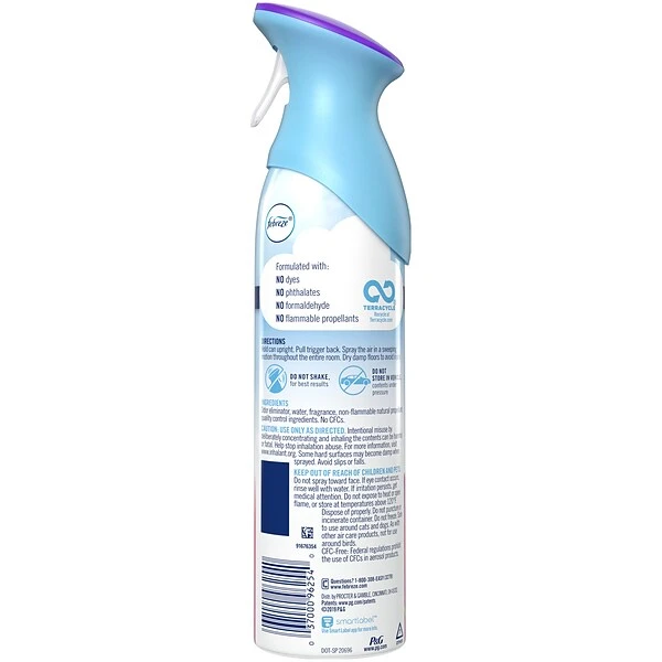 Odors. Theyāre everywhere⦠lingering in the air or arising at the most awkward times. Forget masking them with some froo-froo spray; Febreze Air Effects actually eliminates air odors. This can of ahhh-some straight up removes stink with a neat little molecule called cyclodextrin (Bonus: Itās naturally made from corn). Itās a handy air freshener thatās easy to use: Simply spray in a sweeping motion and clean away those bad smells anywhere: the bathroom, the kitchen, that cabin you rented for the weekend, the shoe closet, your kidsā room⦠anytime you want an instant burst of fresh. And because Febreze AIR uses 100% natural propellants, you can confidently freshen your home every day. Looking for even more ways to breathe happy with Febreze? Take the freshness on the road with CAR Vent Clips.