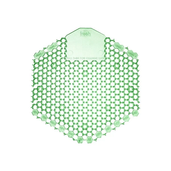 Keep the men’s bathroom smelling fresh with these cucumber melon urinal screens. Cutout holes in the vinyl screens let liquid flow through while preventing debris from getting past. Each screen combats odors for approximately 30 days to reduce the frequency of screen changes. This pack of 10 Fresh Product deodorizer screens provides enough for multiple urinals to minimize odors throughout an entire restroom.