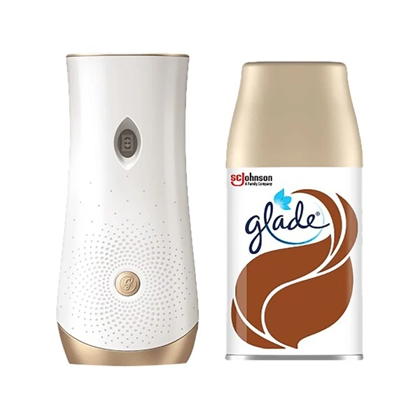 Get cozy with the Glade Cashmere Woods automatic spray starter kit. Consciously crafted with automatic time-release and boost functions, this product is masterfully designed to give you a burst of jasmine petals, creamy sandalwood, and musk, whenever you want it. Set it and forget it, with freshness that lasts up to 60 days. Masterfully designed as the perfect excuse to stay in and snuggle up in wooded bliss. The refill is100% recyclable, and the steel can contains at least 20% post-consumer recycled material and is recyclable.