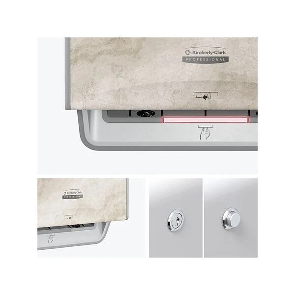 Bring adaptable style and sophistication into the washroom with this Kimberly-Clark Professional ICON automatic roll towel dispenser with a warm marble design faceplate. The Kimberly-Clark Professional ICON dispenser system offers six designer finishes that elevate your restroom aesthetics to the same high standard as the rest of your facility. A patented direct-drive technology delivers 99.99% jam-free dispensing and nearly silent operation. Maintenance is simplified through a color-coded system with intuitive touch points.