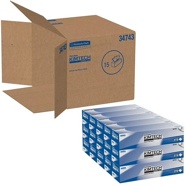 Clean even the most fragile equipment with Kimtech Science Kimwipes delicate task wipers. These three-ply wipes soak up liquids and clear away dust quickly and easily without leaving lint behind. A case includes 15 boxes, each with a convenient pop-up dispenser and 119 soft, absorbent delicate task wipers.