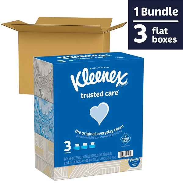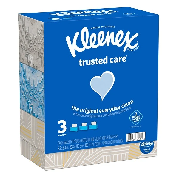 Ensure your office, store or classroom is stocked up by purchasing this three-pack of Kleenex tissues. Perfect for wiping away tears or sweat, these tissues offer versatile uses wherever you place a box. When you travel for business, tuck a few tissues into your handbag or briefcase to help you remove cosmetics or sop up spills on the go.