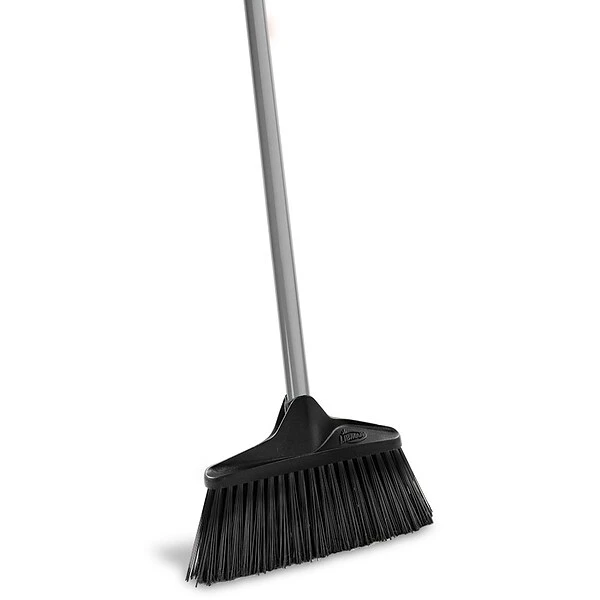 The Libman Housekeeper Broom (#499) is a 10″ wide angle broom that has 4.25″ long, staple-set flagged fibers that won’t fall out. Its steel handle and one-piece resin block is built for durability.