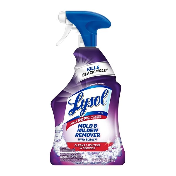 Fast-acting sanitizer whitens and removes mold and mildew stains, soap scum and tough spots and stains