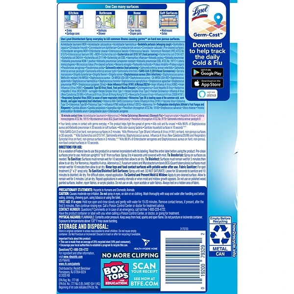 - Meets AOAC Germicidal Spray Test Standards for hospital aerosol disinfectants