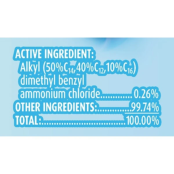 - Kills 99.9% of viruses and bacteria, including cold and flu viruses, Salmonella, E. Coli, MRSA, RSV, Staph, and Strep, when used as directed on hard, non-porous surfaces.