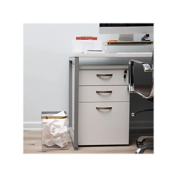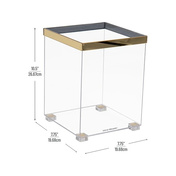 The Mind Reader Cosmopolitan Collection wastepaper basket is a great choice for wherever you need to declutter and need a wastebasket close at hand. The clear design with a gold-tone accents compliments any color or existing decor, and is a great fit for the office or home. You can also feel confident in your wastepaper basket, knowing it’s BPA-free and free from other harmful chemicals. This basket works well for wastepaper, but with its clear design, it also works well as a simple storage solution, such as for hand or wash towels. The basket resists odors and is easily cleaned with mild dish soap and water to keep the design sparkling and clear. The small size makes the basket easily portable, if you need to move it. It’s a terrific gift for graduation and back to school, birthdays, office get-togethers, and more. Match this basket with other items in the Cosmopolitan Collection to achieve a complete look.