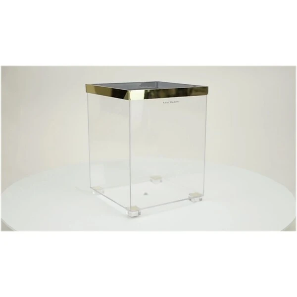 - Made of clear acrylic with a gold-tone trimmed top overlay