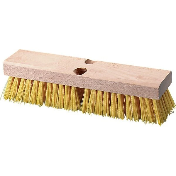 O’Dell® Deck brush in cream color offers a 10″ long hardwood block with tapered and threaded handle holes for grip and easy hanging. Brush can be used for any general purpose scrubbing and is not affected by solvents or acids.