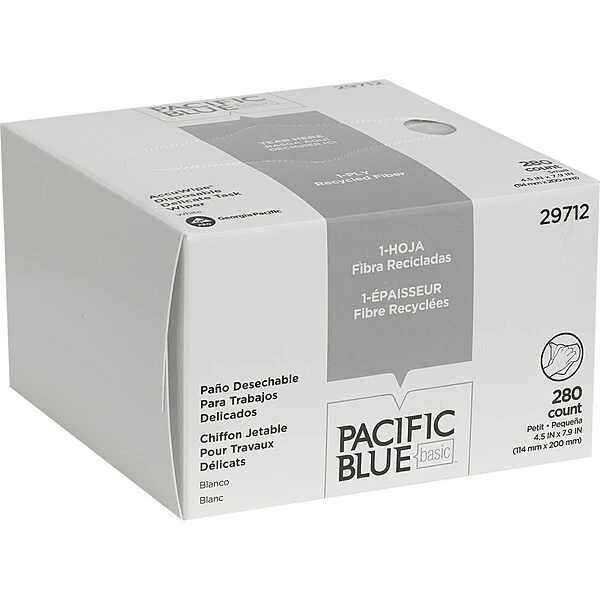 Pacific Blue Basic AccuWipe recycled 3-ply disposable delicate-task wipers deliver low-lint, low-contaminant performance across a variety of industries and diverse applications. These convenient, palm-sized, single-ply wipers offer superior conformity, making them perfect for the most delicate tasks. Antistatic poly shield minimizes electrostatic discharge to help protect against damage to sensitive electronic parts. Soft, nonabrasive, pure-fiber paper offers greater absorbency and streak-free cleaning for compatibility with many hard polycarbonates and glass surfaces. Use these versatile low-lint wipes as electronic wipes or tech wipes.