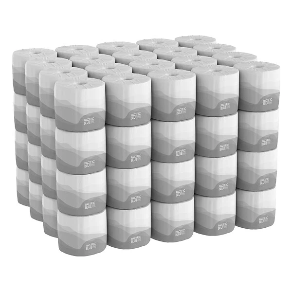 Pacific Blue Basic white 1-ply bathroom tissue works perfectly for institutions that need an affordable option while remaining sensitive to environmental concerns. Each tissue roll is made of EPA-compliant recycled fiber content and the paper is biodegradable so it won’t clog your facilities’ wastewater systems. A standard core size fits ordinary paper dispensers for convenience and ease of use. Individual wrapping makes it easy to handle each roll during replacement and to stock multiple bathrooms from a single pack.
