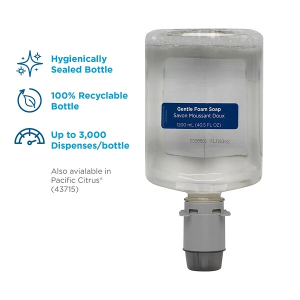 Promote better hygiene and sanitary conditions in your workplace with these foam-soap dispenser refills. The dye- and fragrance-free format is ideal for anyone with skin sensitivities, and the rich foam offers a luxurious feel. Each pump delivers a gentle foaming cleanser with a built-in conditioning formula to leave hands feeling soft. With a simple design, these Pacific Blue Ultra soap dispenser refills offer hassle-free installation.
