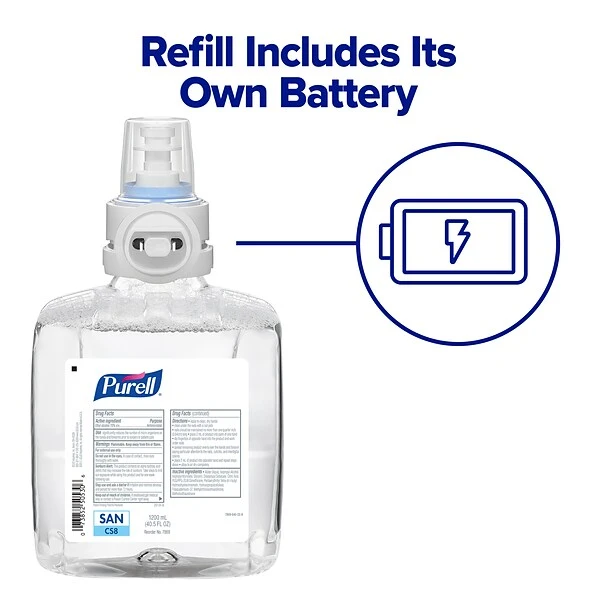 - Uses PURELL CS8 1200 mL Hand Sanitizer Refills, with integrated coin cell batteries so you never have to worry about battery change-outs