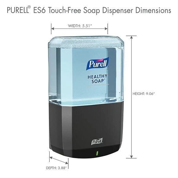 - ES6 Touch-free dispensers automatically dispense the perfect amount of soap for handwashing, and the guaranteed dispenser reliability ensures it’s ready to dispense whenever soap is needed