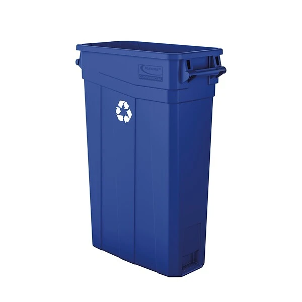 The resin slim trash cans were designed to not only be tough but also functional. Its slim design fits in the tightest of areas to conserve space and its heavy-duty polymer construction allows for strength and rigidity. The bag cinches secure the liner in place around the rim, while the extra-large interior air channels allow for effortless liner removal. A variety of lids and dollies are also available to increase their productivity and allow them to blend seamlessly into any environment