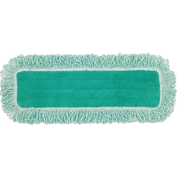 Provide greater surface area contact to speed cleaning in open areas with this dust mop pad. Dense electrostatic microfiber on this mop pad attracts dust and dirt while the looped fringe tackles larger debris. The double finish edges on this dust mop retain their shape through multiple washes for a quality clean every time. The durable construction of this Rubbermaid HYGEN mop pad allows it to be laundered up to 500 times.