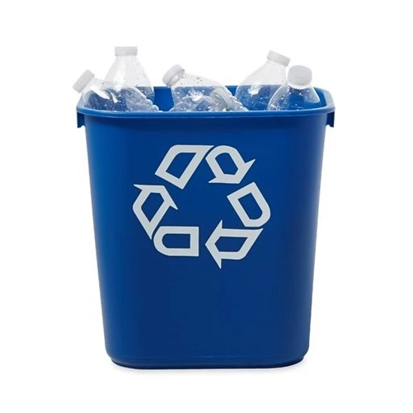 Adopt a reliable recycling solution with this small deskside recycling container. The plastic construction prevents this container from chipping or splitting, while the prominent recycling symbol printed on the side makes it immediately identifiable from traditional trash cans. This Rubbermaid recycling container is small in size, making it perfect for use under a desk.