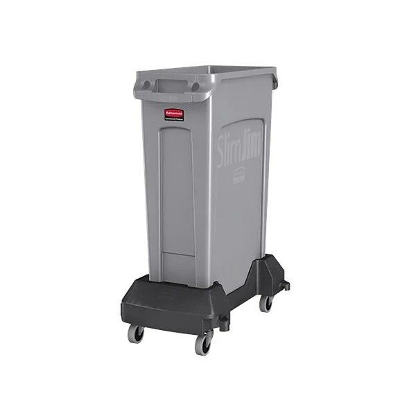 The Rubbermaid Slim Jim resin dolly is designed to support and transport containers smoothly and efficiently through any commercial facility. Features a side clip-on connection that allows you to train several dollies together for collection and transportation purposes. Foot pedal release makes disconnecting dollies quick and easy. Structural foam construction ensures maximum durability in commercial environments.