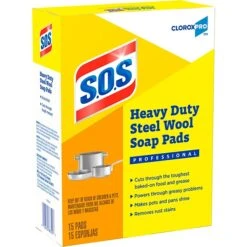S.O.SĀ® Heavy Duty Steel Wool Soap Pads are tough so you donāt have to be. Made with durable steel wool and saturated with long-lasting soap, these pads cut through even the toughest baked-on, greasy, grimy messes. They are perfect for cleaning ovens, broilers, cookie sheets and pots and pans. These reusable steel wool soap pads are great outside the kitchen, too. From scrubbing stoves and shower doors to cleaning grills and golf clubs, S.O.SĀ® Steel Wool Soap Pads quickly removes stubborn grease, rust and stains inside and outside the home or workplace. The soap contains rust inhibitors, preservatives, biodegradable soaps and detergents, a pH buffer, fragrance and color. From CloroxProā¢, these steel wool soap pads are ideal for use in restaurants, cafeterias, hotels, break rooms and other commercial facilities. Cleaning is quick and easy with S.O.SĀ®.