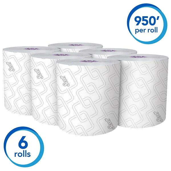 Load paper towel dispensers with these single-ply hardwound paper towel rolls to dry hands quickly and comfortably. These Scott Essential paper towels come in a 6-count package and are compatible with select Scott dispensers.